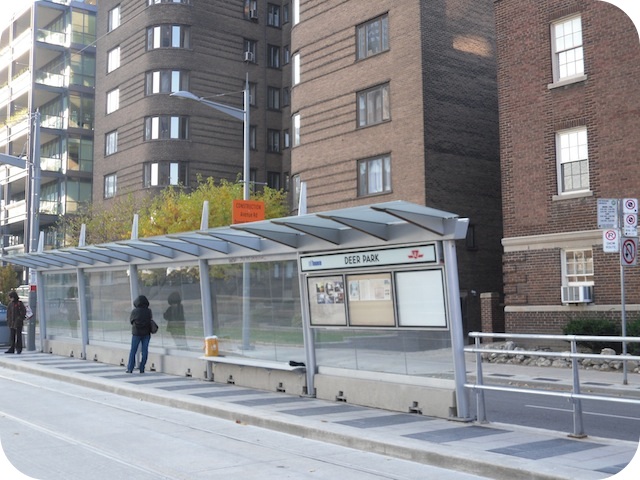 Attached to this westbound St. Clair Avenue West transit shelter at Deer Park Crescent is this City of Toronto plaque. Here's what it says: